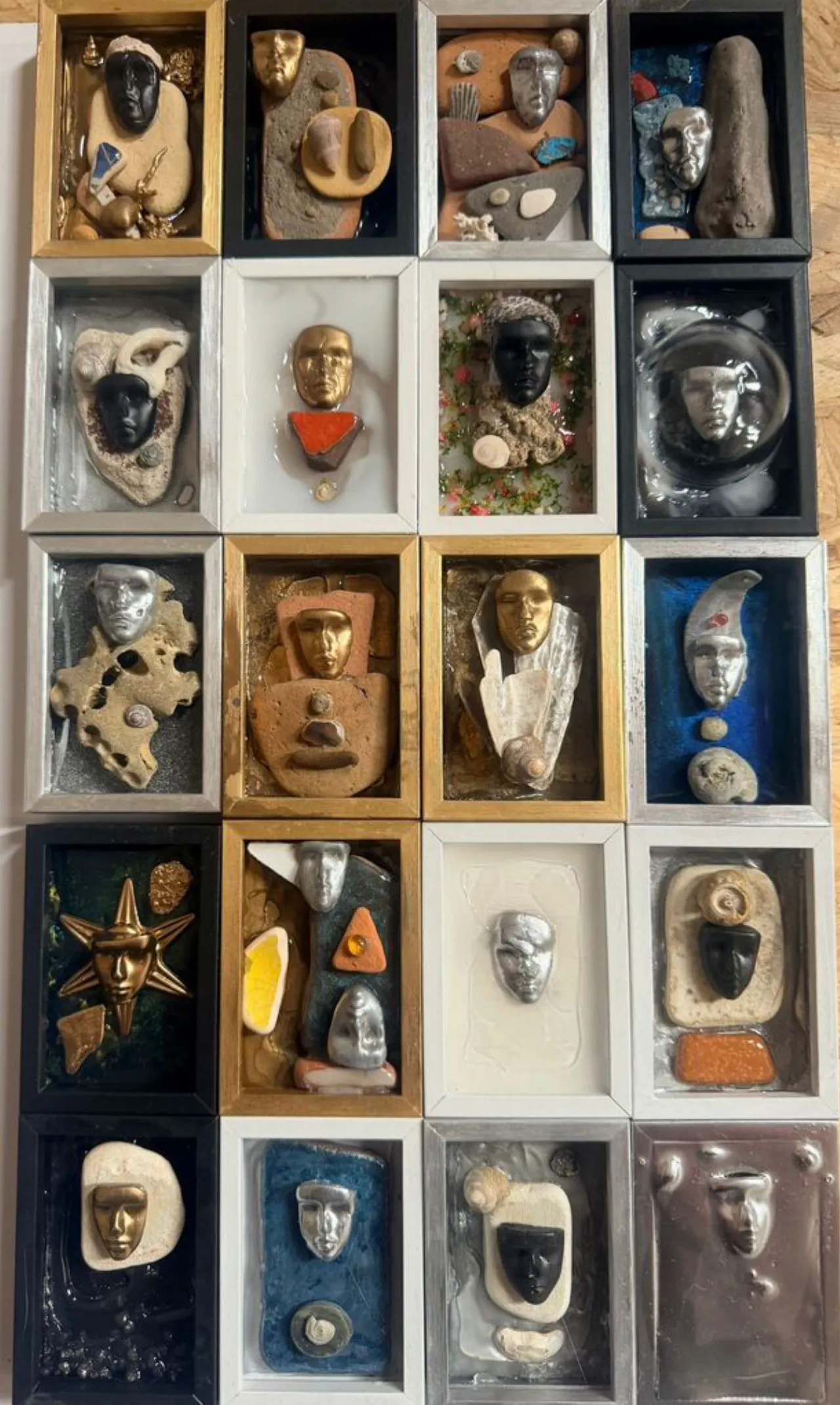 Le opere sono realizzate a partire da materiali restituiti dal mare: oggetti segnati dal tempo, frammenti carichi di memoria che si trasformano in linguaggio visivo.