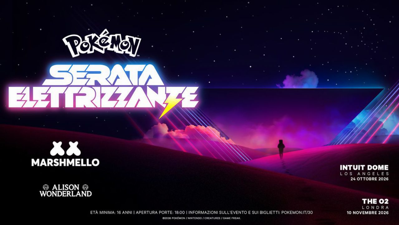 I due eventi principali, chiamati “Serata elettrizzante”, si terranno il 24 ottobre 2026 all’Intuit Dome di Los Angeles e il 10 novembre 2026 all’O2 Arena di Londra. Sul palco salirà Marshmello come protagonista della serata, affiancato da Alison Wonderland in apertura. Le performance uniranno musica EDM e scenografie ispirate all’universo Pokémon, con effetti visivi e contenuti creati appositamente per l’occasione.