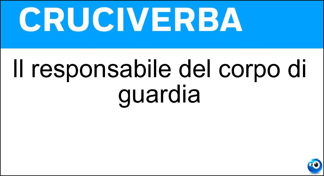 Nei cruciverba e nelle parole crociate, la definizione "Il responsabile del corpo di guardia" corrisponde a una soluzione formata da 9 lettere. È un quesito ricorrente nel mondo dell’enigmistica, presente con frequenza sia nelle griglie stampate sia nei giochi digitali dedicati agli appassionati.