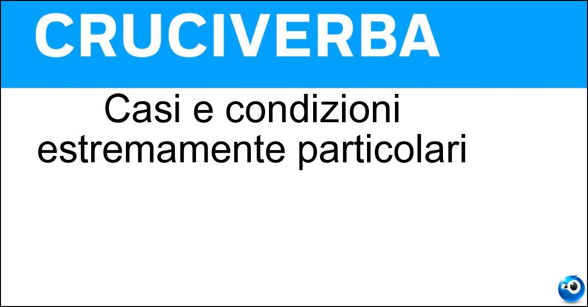 Nei cruciverba e nelle parole crociate, la definizione "Casi e condizioni estremamente particolari" corrisponde a una soluzione formata da 9 lettere. È un quesito ricorrente nel mondo dell’enigmistica, presente con frequenza sia nelle griglie stampate sia nei giochi digitali dedicati agli appassionati.