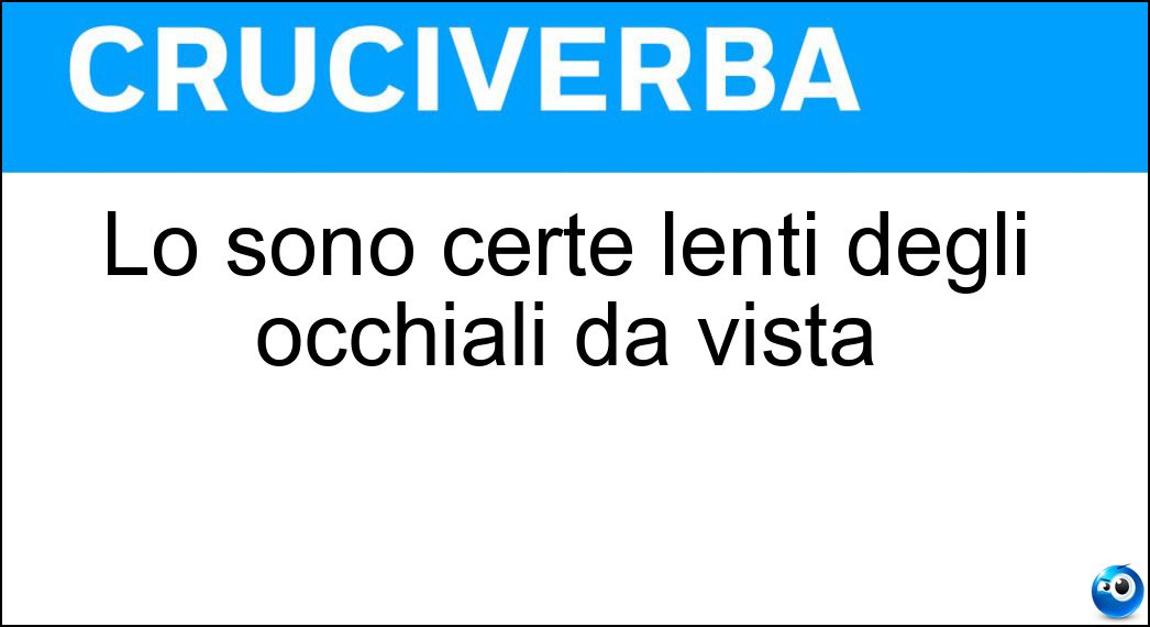 Riviste come La Settimana Enigmistica, Enigmistica Più e molte altre pubblicazioni specializzate hanno più volte inserito nei loro schemi la definizione "Lo sono certe lenti degli occhiali da vista [Soluzione Cruciverba 8 lettere]". Proprio per questo motivo, la soluzione associata è stata attentamente controllata e verificata dall’appassionato di enigmistica Sara Verdi, così da garantirne l’affidabilità e l’utilizzo senza incertezze.