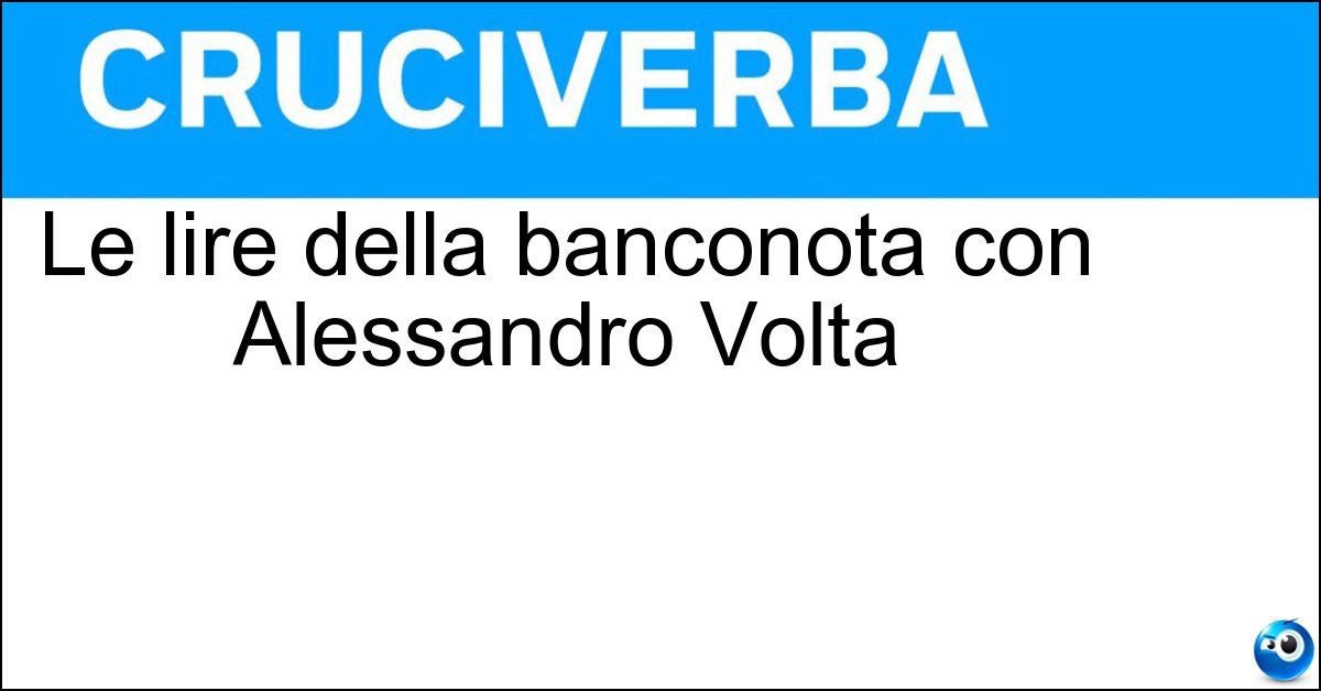 Nei cruciverba e nelle parole crociate, la definizione "Le lire della banconota con Alessandro Volta" corrisponde a una soluzione formata da 9 lettere. È un quesito ricorrente nel mondo dell’enigmistica, presente con frequenza sia nelle griglie stampate sia nei giochi digitali dedicati agli appassionati.