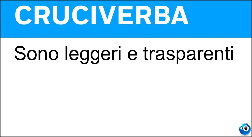 Nei cruciverba e nelle parole crociate, la definizione "Sono leggeri e trasparenti" corrisponde a una soluzione formata da 4 lettere. È un quesito ricorrente nel mondo dell’enigmistica, presente con frequenza sia nelle griglie stampate sia nei giochi digitali dedicati agli appassionati.