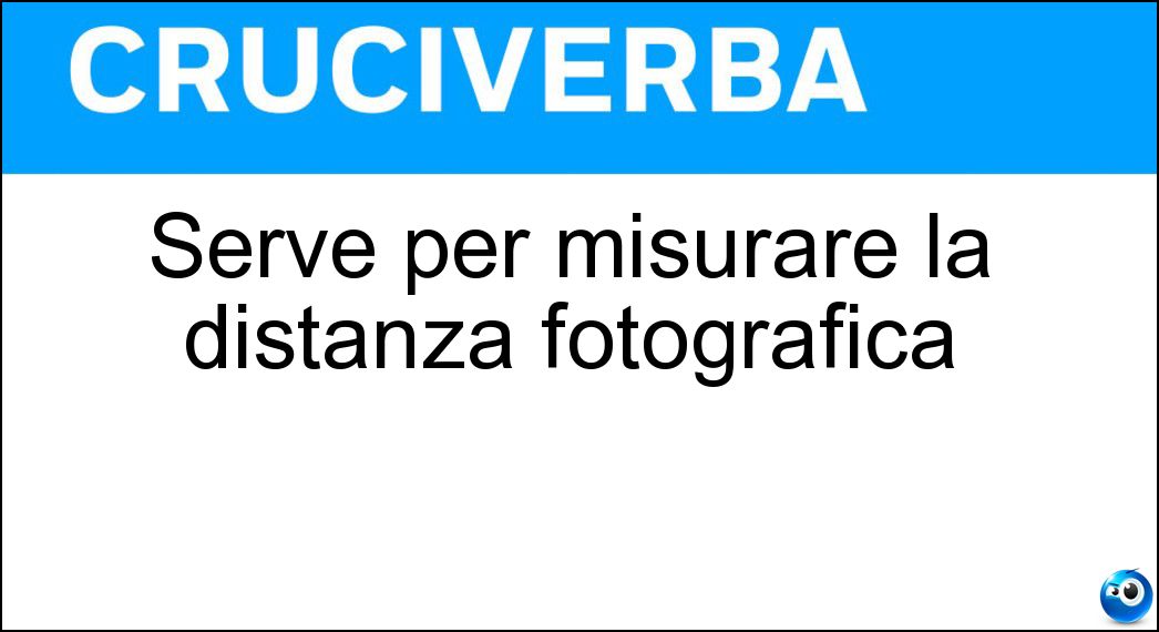 In presenza della definizione "Serve per misurare la distanza fotografica", è possibile consultare qui la risposta utile per proseguire con il cruciverba. In alcuni casi, il significato della definizione può variare leggermente in base al contesto del cruciverba e alle lettere fornite dagli incroci. Nonostante queste possibili differenze, l’analisi effettuata su "Serve per misurare la distanza fotografica" conferma che la soluzione indicata è quella più coerente e compatibile con la maggior parte degli schemi italiani.