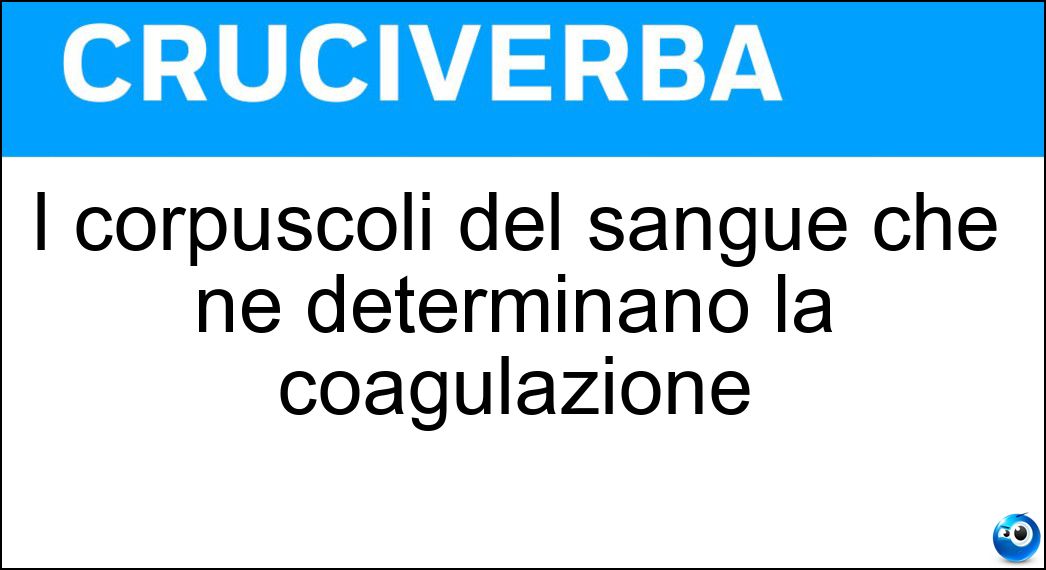 La definizione "I corpuscoli del sangue che ne determinano la coagulazione", utilizzata nei cruciverba e nelle parole crociate, ha una soluzione composta da 9 lettere. Si tratta di un enigma piuttosto comune, che ricorre spesso sia nei giochi cartacei sia nelle versioni digitali dedicate agli appassionati di enigmistica.