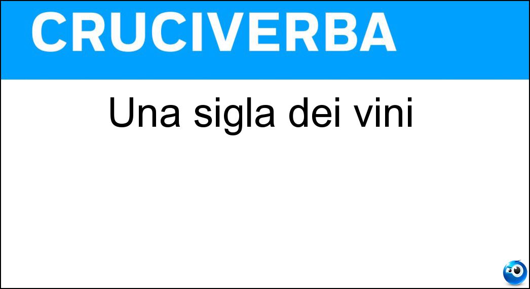 Nei cruciverba e nelle parole crociate, la definizione "Una sigla dei vini" corrisponde a una soluzione formata da 3 lettere. È un quesito ricorrente nel mondo dell’enigmistica, presente con frequenza sia nelle griglie stampate sia nei giochi digitali dedicati agli appassionati.