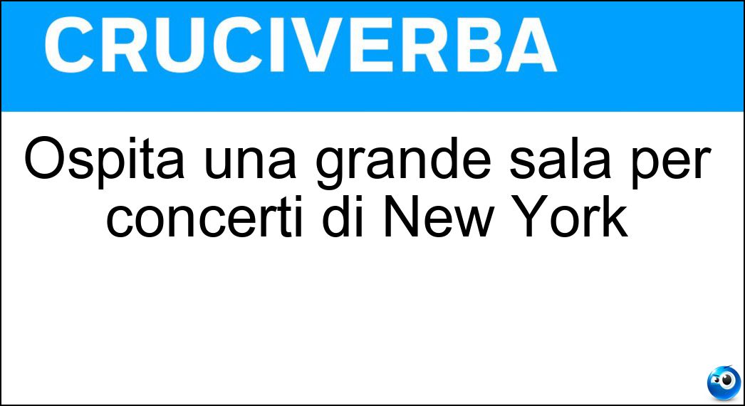 Nei cruciverba e nelle parole crociate, la definizione "Ospita una grande sala per concerti di New York" corrisponde a una soluzione formata da 12 lettere. È un quesito ricorrente nel mondo dell’enigmistica, presente con frequenza sia nelle griglie stampate sia nei giochi digitali dedicati agli appassionati.