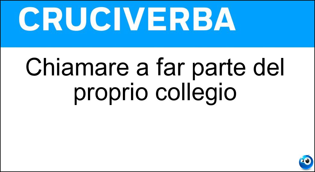 In presenza della definizione "Chiamare a far parte del proprio collegio", è possibile consultare qui la risposta utile per proseguire con il cruciverba. In alcuni casi, il significato della definizione può variare leggermente in base al contesto del cruciverba e alle lettere fornite dagli incroci. Nonostante queste possibili differenze, l’analisi effettuata su "Chiamare a far parte del proprio collegio" conferma che la soluzione indicata è quella più coerente e compatibile con la maggior parte degli schemi italiani.