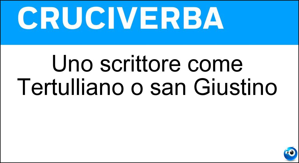 La definizione "Uno scrittore come Tertulliano o san Giustino", utilizzata nei cruciverba e nelle parole crociate, ha una soluzione composta da 10 lettere. Si tratta di un enigma piuttosto comune, che ricorre spesso sia nei giochi cartacei sia nelle versioni digitali dedicate agli appassionati di enigmistica.