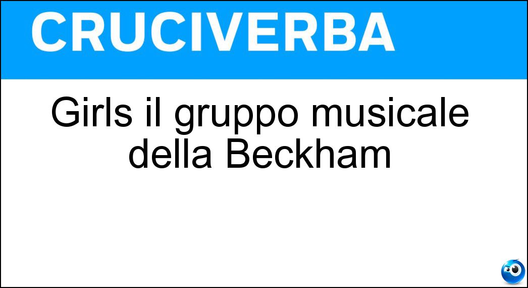 Nei cruciverba e nelle parole crociate, la definizione "Girls il gruppo musicale della Beckham" corrisponde a una soluzione formata da 5 lettere. È un quesito ricorrente nel mondo dell’enigmistica, presente con frequenza sia nelle griglie stampate sia nei giochi digitali dedicati agli appassionati.