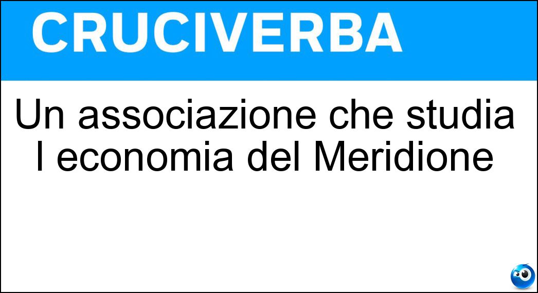 La definizione "Un associazione che studia l economia del Meridione", utilizzata nei cruciverba e nelle parole crociate, ha una soluzione composta da 6 lettere. Si tratta di un enigma piuttosto comune, che ricorre spesso sia nei giochi cartacei sia nelle versioni digitali dedicate agli appassionati di enigmistica.