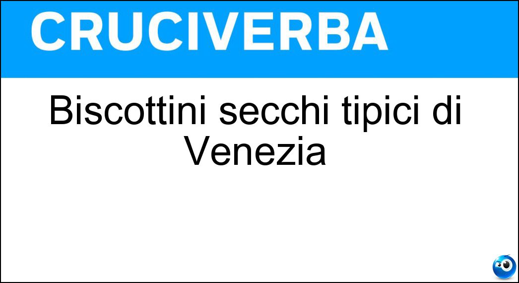 La definizione "Biscottini secchi tipici di Venezia", utilizzata nei cruciverba e nelle parole crociate, ha una soluzione composta da 7 lettere. Si tratta di un enigma piuttosto comune, che ricorre spesso sia nei giochi cartacei sia nelle versioni digitali dedicate agli appassionati di enigmistica.