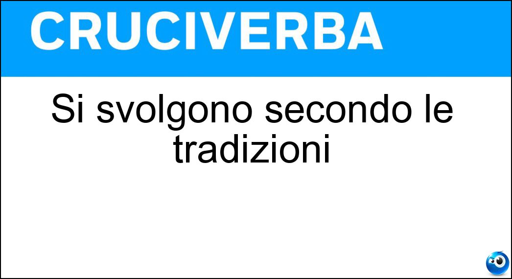 Nei cruciverba e nelle parole crociate, la definizione "Si svolgono secondo le tradizioni" corrisponde a una soluzione formata da 4 lettere. È un quesito ricorrente nel mondo dell’enigmistica, presente con frequenza sia nelle griglie stampate sia nei giochi digitali dedicati agli appassionati.