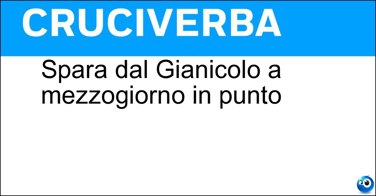 La definizione "Spara dal Gianicolo a mezzogiorno in punto", utilizzata nei cruciverba e nelle parole crociate, ha una soluzione composta da 7 lettere. Si tratta di un enigma piuttosto comune, che ricorre spesso sia nei giochi cartacei sia nelle versioni digitali dedicate agli appassionati di enigmistica.