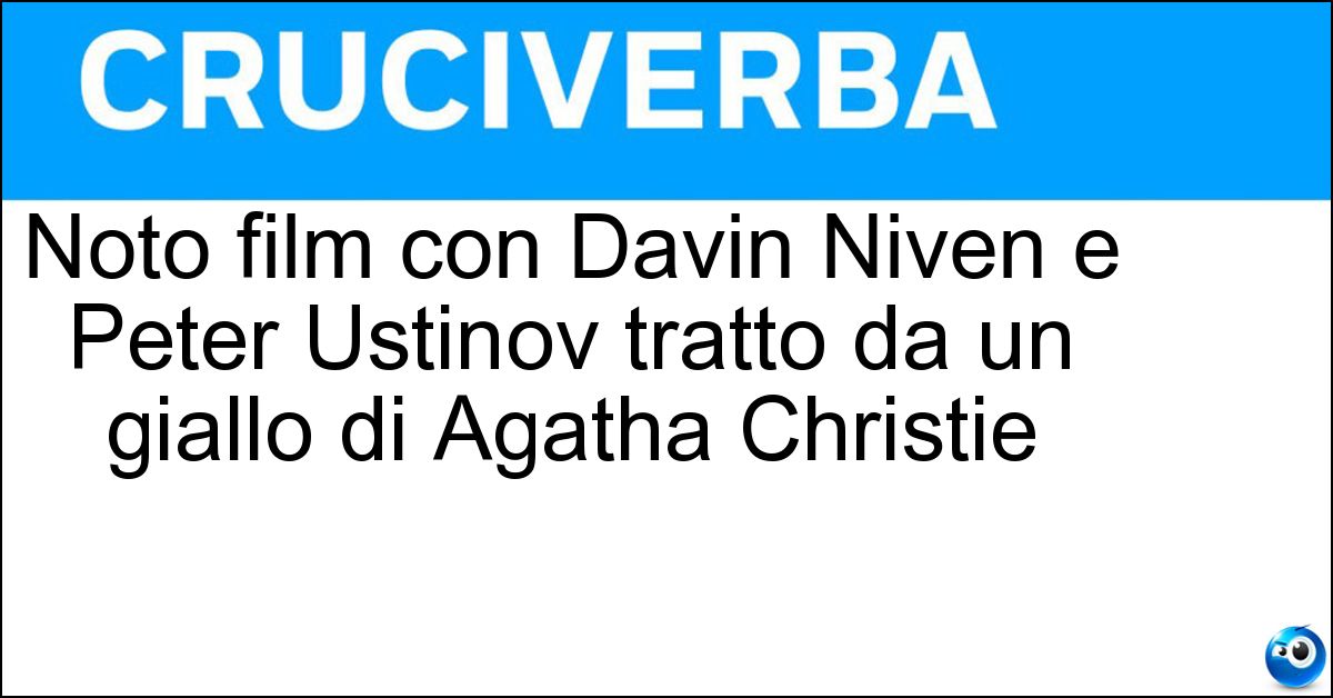 Nei cruciverba e nelle parole crociate, la definizione "Noto film con Davin Niven e Peter Ustinov tratto da un giallo di Agatha Christie" corrisponde a una soluzione formata da 17 lettere. È un quesito ricorrente nel mondo dell’enigmistica, presente con frequenza sia nelle griglie stampate sia nei giochi digitali dedicati agli appassionati.
