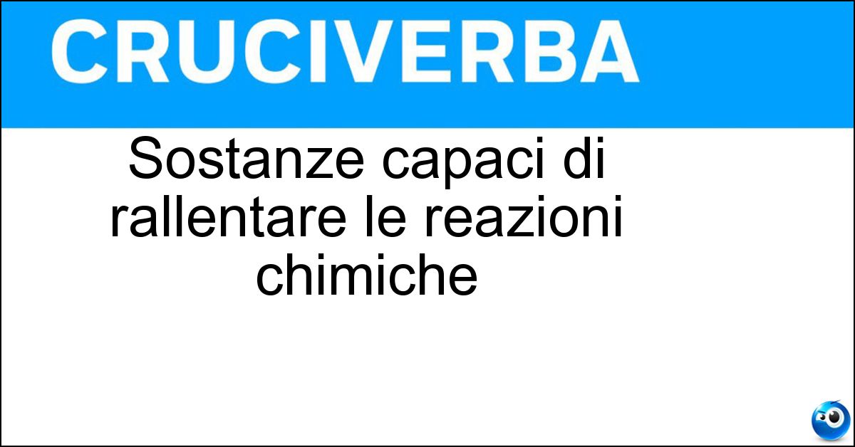 Nei cruciverba e nelle parole crociate, la definizione "Sostanze capaci di rallentare le reazioni chimiche" corrisponde a una soluzione formata da 10 lettere. È un quesito ricorrente nel mondo dell’enigmistica, presente con frequenza sia nelle griglie stampate sia nei giochi digitali dedicati agli appassionati.