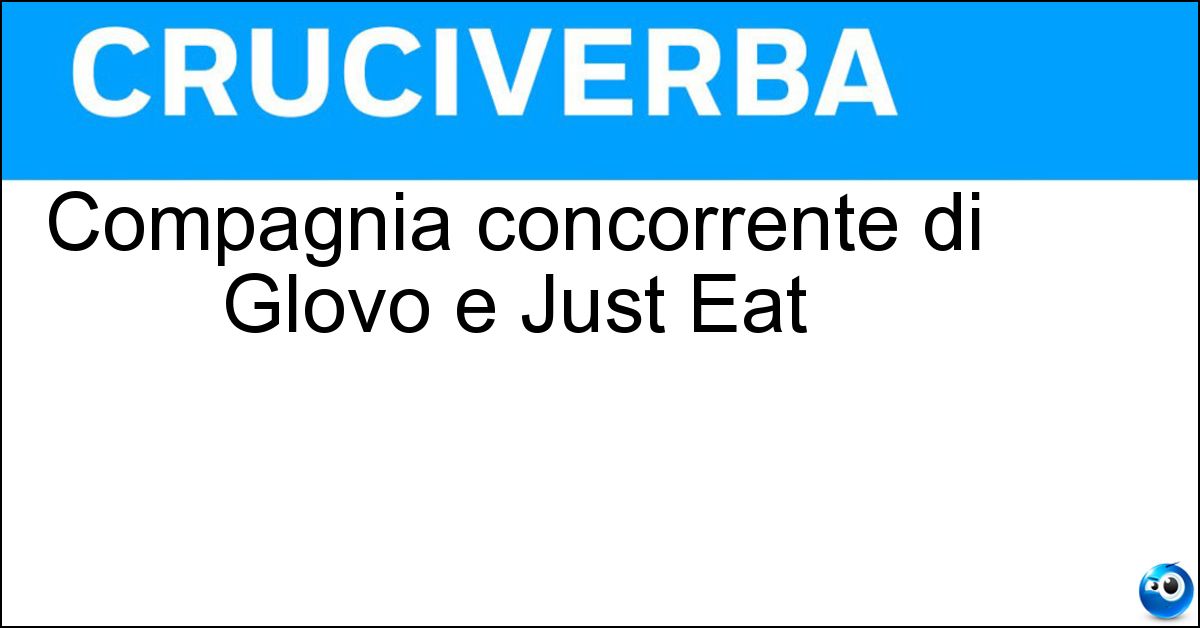 Nei cruciverba e nelle parole crociate, la definizione "Compagnia concorrente di Glovo e Just Eat" corrisponde a una soluzione formata da 9 lettere. È un quesito ricorrente nel mondo dell’enigmistica, presente con frequenza sia nelle griglie stampate sia nei giochi digitali dedicati agli appassionati.