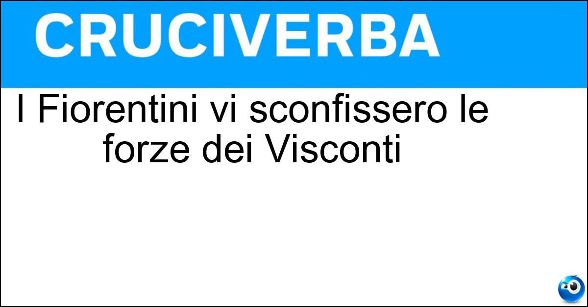 Nei cruciverba e nelle parole crociate, la definizione "I Fiorentini vi sconfissero le forze dei Visconti" corrisponde a una soluzione formata da 8 lettere. È un quesito ricorrente nel mondo dell’enigmistica, presente con frequenza sia nelle griglie stampate sia nei giochi digitali dedicati agli appassionati.