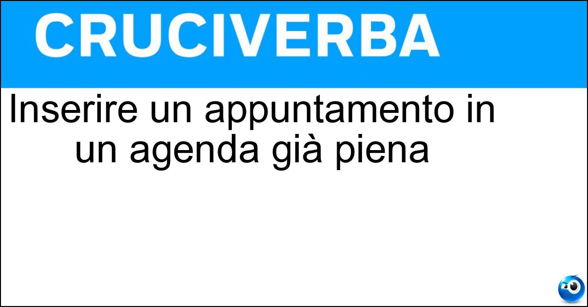 Nei cruciverba e nelle parole crociate, la definizione "Inserire un appuntamento in un agenda già piena" corrisponde a una soluzione formata da 10 lettere. È un quesito ricorrente nel mondo dell’enigmistica, presente con frequenza sia nelle griglie stampate sia nei giochi digitali dedicati agli appassionati.