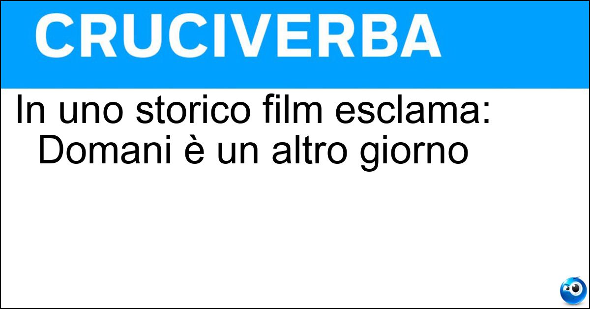 Nei cruciverba e nelle parole crociate, la definizione "In uno storico film esclama: Domani è un altro giorno" corrisponde a una soluzione formata da 8 lettere. È un quesito ricorrente nel mondo dell’enigmistica, presente con frequenza sia nelle griglie stampate sia nei giochi digitali dedicati agli appassionati.