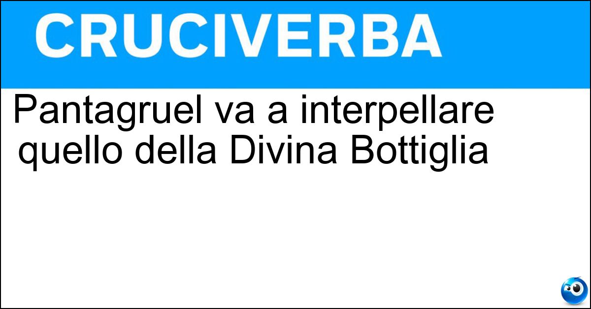 Nei cruciverba e nelle parole crociate, la definizione "Pantagruel va a interpellare quello della Divina Bottiglia" corrisponde a una soluzione formata da 7 lettere. È un quesito ricorrente nel mondo dell’enigmistica, presente con frequenza sia nelle griglie stampate sia nei giochi digitali dedicati agli appassionati.
