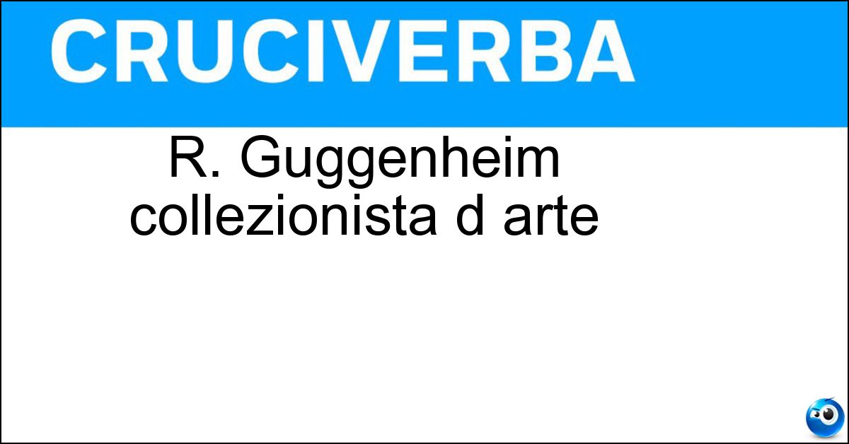 Nei cruciverba e nelle parole crociate, la definizione "R. Guggenheim collezionista d arte" corrisponde a una soluzione formata da 7 lettere. È un quesito ricorrente nel mondo dell’enigmistica, presente con frequenza sia nelle griglie stampate sia nei giochi digitali dedicati agli appassionati.