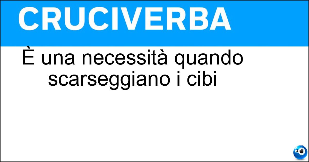 Nei cruciverba e nelle parole crociate, la definizione "È una necessità quando scarseggiano i cibi" corrisponde a una soluzione formata da 12 lettere. È un quesito ricorrente nel mondo dell’enigmistica, presente con frequenza sia nelle griglie stampate sia nei giochi digitali dedicati agli appassionati.