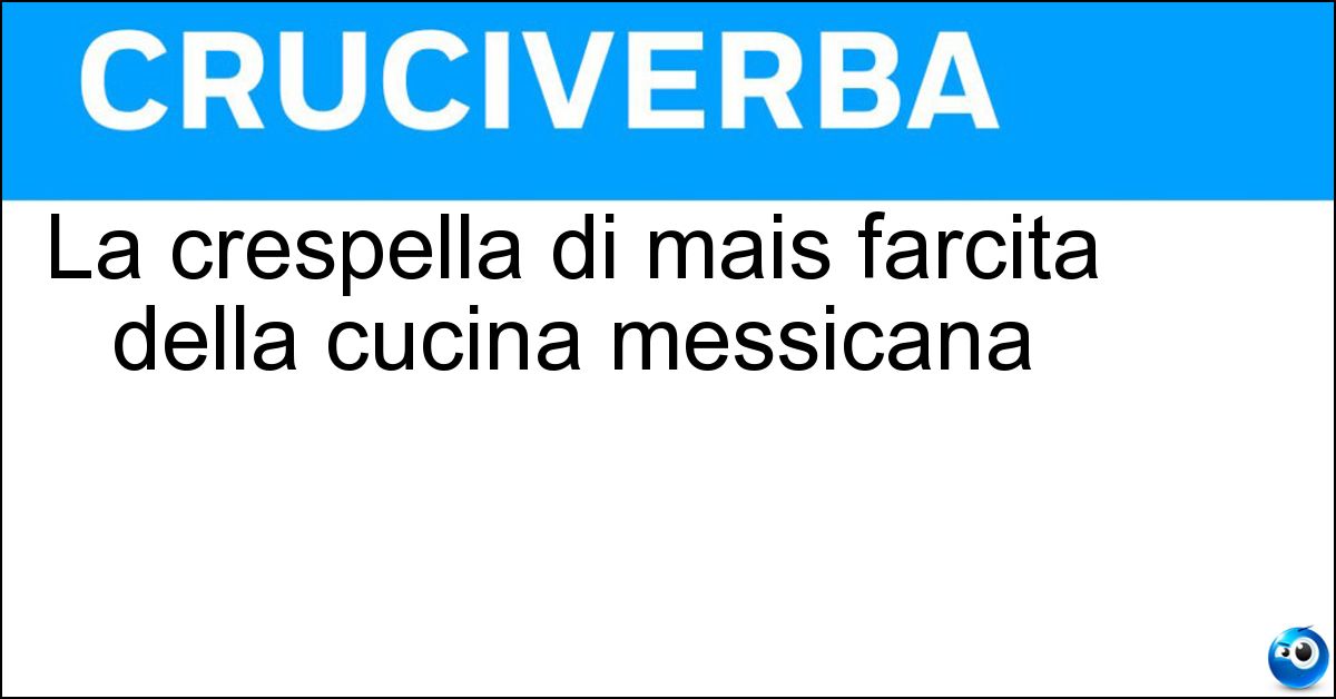 Adesso divertiti e prova a risolvere anche queste definizioni correlate: Una pietanza messicanaLa tipica crespella messicanaCrespella messicanaLa crespella della cucina messicanaCrespella della cucina messicanaLe crespelle di mais farcite della cucina messicanaFocacce di mais della cucina messicanaTipica crespella messicana
