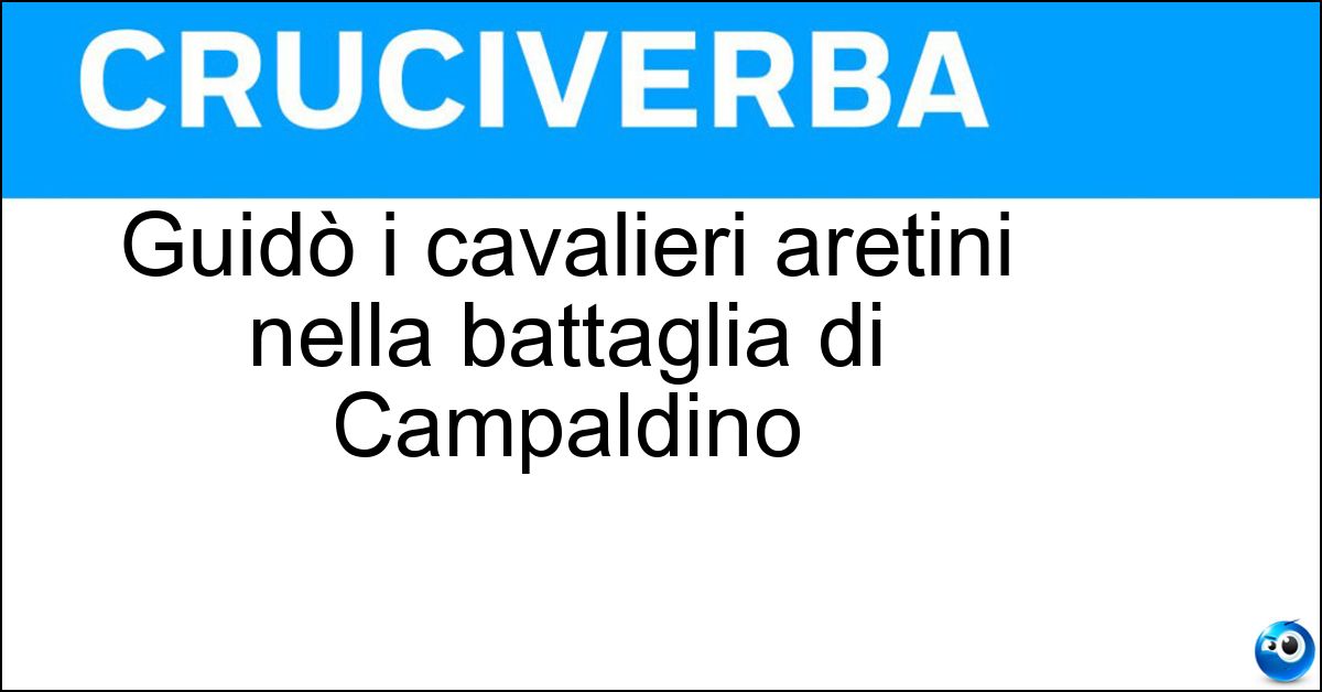 Nei cruciverba e nelle parole crociate, la definizione "Guidò i cavalieri aretini nella battaglia di Campaldino" corrisponde a una soluzione formata da 21 lettere. È un quesito ricorrente nel mondo dell’enigmistica, presente con frequenza sia nelle griglie stampate sia nei giochi digitali dedicati agli appassionati.