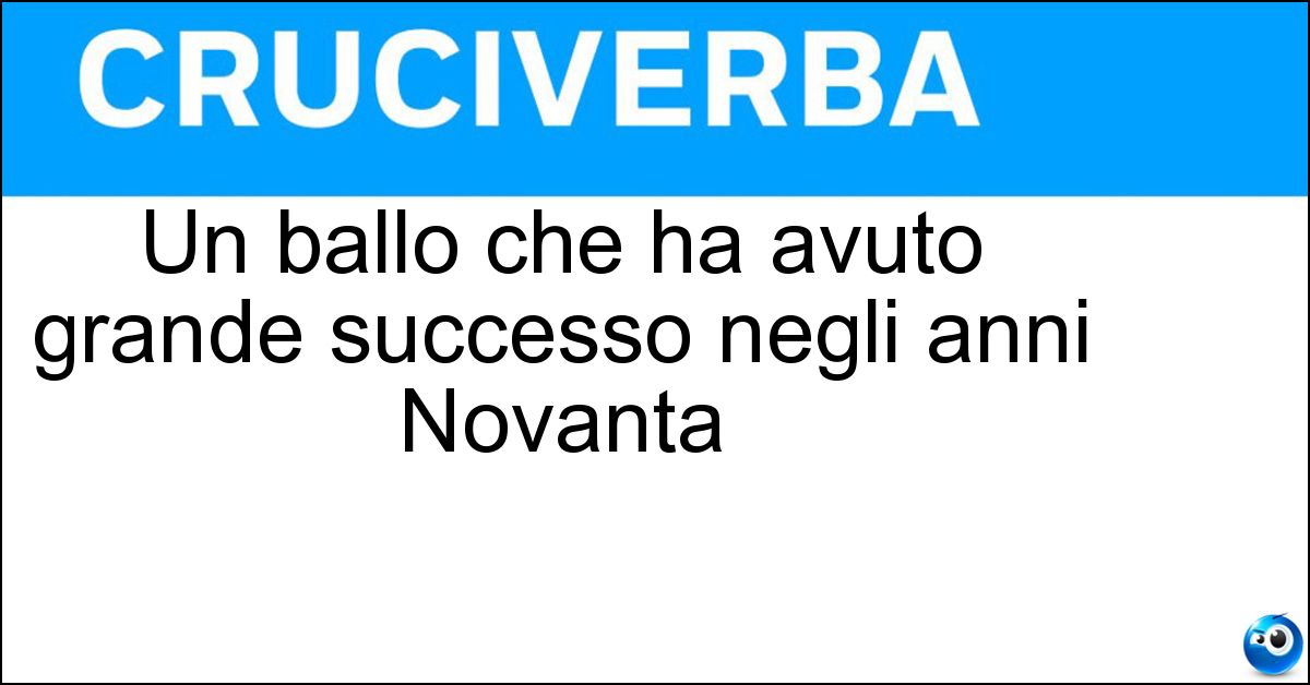 Nei cruciverba e nelle parole crociate, la definizione "Un ballo che ha avuto grande successo negli anni Novanta" corrisponde a una soluzione formata da 8 lettere. È un quesito ricorrente nel mondo dell’enigmistica, presente con frequenza sia nelle griglie stampate sia nei giochi digitali dedicati agli appassionati.