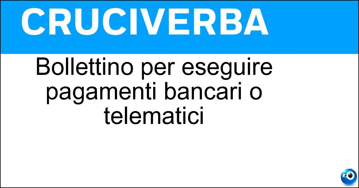 Nei cruciverba e nelle parole crociate, la definizione "Bollettino per eseguire pagamenti bancari o telematici" corrisponde a una soluzione formata da 3 lettere. È un quesito ricorrente nel mondo dell’enigmistica, presente con frequenza sia nelle griglie stampate sia nei giochi digitali dedicati agli appassionati.