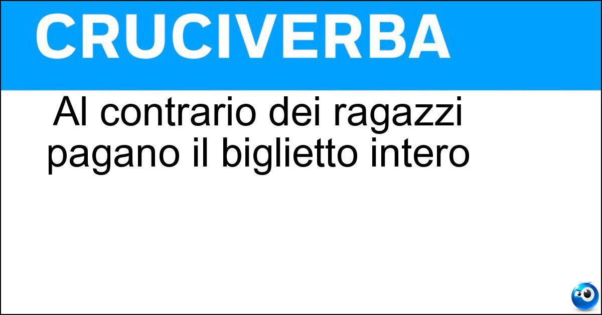 Testate storiche come La Settimana Enigmistica, Enigmistica Più e altre riviste specializzate hanno incluso più volte nei loro schemi la definizione "Al contrario dei ragazzi pagano il biglietto intero". La risposta associata è stata quindi controllata con attenzione dall’enigmista Sara Verdi, per garantirne correttezza e affidabilità nell’uso pratico. Questa verifica consente di utilizzare la soluzione con maggiore sicurezza, anche in presenza di schemi complessi o incroci articolati.