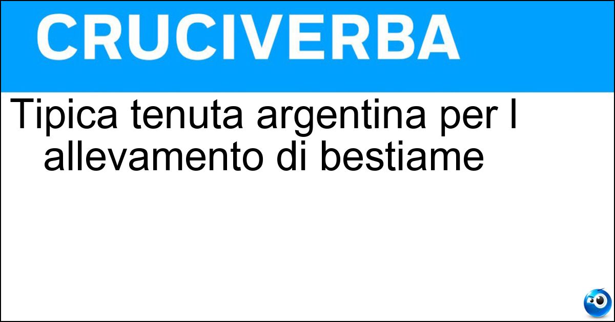 Nei cruciverba e nelle parole crociate, la definizione "Tipica tenuta argentina per l allevamento di bestiame" corrisponde a una soluzione formata da 8 lettere. È un quesito ricorrente nel mondo dell’enigmistica, presente con frequenza sia nelle griglie stampate sia nei giochi digitali dedicati agli appassionati.