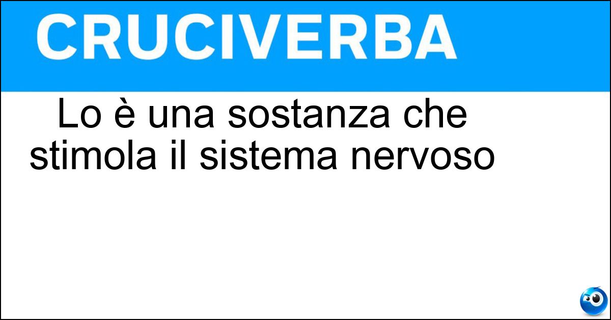 Adesso divertiti e prova a risolvere anche queste definizioni correlate: Una sostanza che stimola il sistema nervosoLo stimola il pacemakerLo sistema il cantante prima di esibirsiLo è una sostanza come il gelIl sistema nervoso detto anche vegetativo