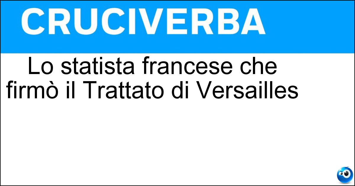 Nei cruciverba e nelle parole crociate, la definizione "Lo statista francese che firmò il Trattato di Versailles" corrisponde a una soluzione formata da 10 lettere. È un quesito ricorrente nel mondo dell’enigmistica, presente con frequenza sia nelle griglie stampate sia nei giochi digitali dedicati agli appassionati.