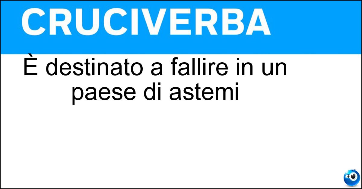 Nei cruciverba e nelle parole crociate, la definizione "È destinato a fallire in un paese di astemi" corrisponde a una soluzione formata da 10 lettere. È un quesito ricorrente nel mondo dell’enigmistica, presente con frequenza sia nelle griglie stampate sia nei giochi digitali dedicati agli appassionati.