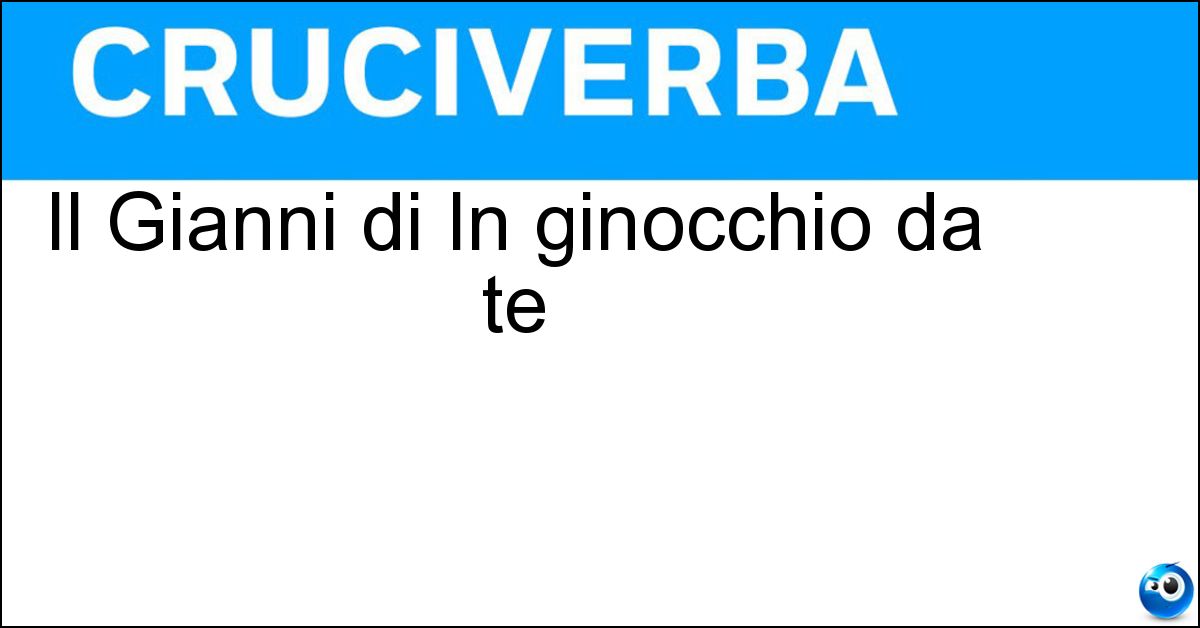 In presenza della definizione "Il Gianni di In ginocchio da te", è possibile consultare qui la risposta utile per proseguire con il cruciverba. In alcuni casi, il significato della definizione può variare leggermente in base al contesto del cruciverba e alle lettere fornite dagli incroci. Nonostante queste possibili differenze, l’analisi effettuata su "Il Gianni di In ginocchio da te" conferma che la soluzione indicata è quella più coerente e compatibile con la maggior parte degli schemi italiani.