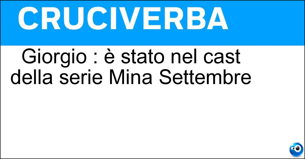Nei cruciverba e nelle parole crociate, la definizione "Giorgio : è stato nel cast della serie Mina Settembre" corrisponde a una soluzione formata da 7 lettere. È un quesito ricorrente nel mondo dell’enigmistica, presente con frequenza sia nelle griglie stampate sia nei giochi digitali dedicati agli appassionati.