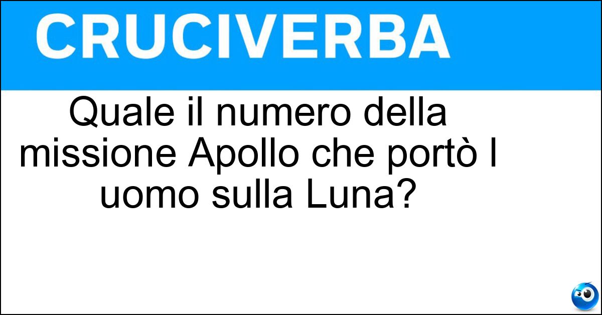 Nei cruciverba e nelle parole crociate, la definizione "Quale il numero della missione Apollo che portò l uomo sulla Luna?" corrisponde a una soluzione formata da 6 lettere. È un quesito ricorrente nel mondo dell’enigmistica, presente con frequenza sia nelle griglie stampate sia nei giochi digitali dedicati agli appassionati.