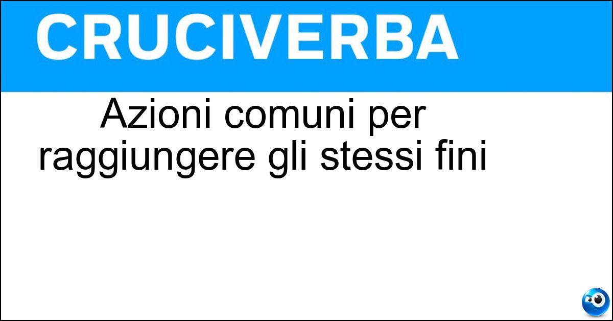 Nei cruciverba e nelle parole crociate, la definizione "Azioni comuni per raggiungere gli stessi fini" corrisponde a una soluzione formata da 8 lettere. È un quesito ricorrente nel mondo dell’enigmistica, presente con frequenza sia nelle griglie stampate sia nei giochi digitali dedicati agli appassionati.