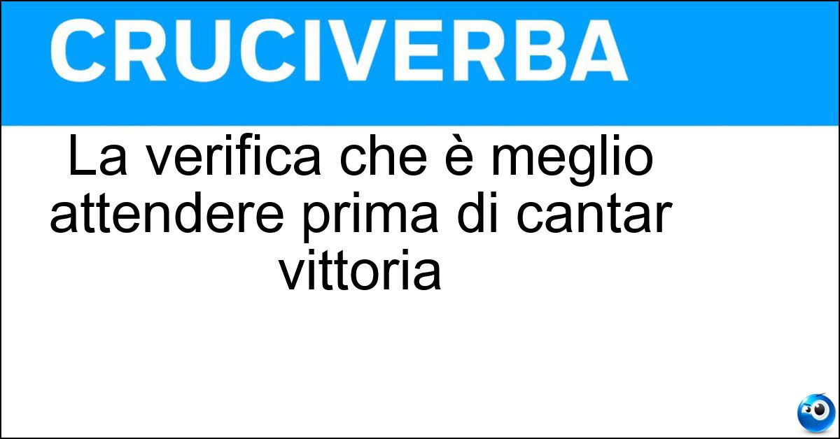 Nei cruciverba e nelle parole crociate, la definizione "La verifica che è meglio attendere prima di cantar vittoria" corrisponde a una soluzione formata da 11 lettere. È un quesito ricorrente nel mondo dell’enigmistica, presente con frequenza sia nelle griglie stampate sia nei giochi digitali dedicati agli appassionati.