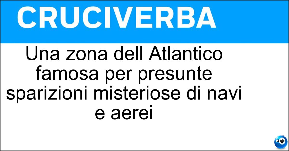 Una zona dell Atlantico famosa per presunte sparizioni misteriose di navi e aerei nei cruciverba: la soluzione di 21 lettere è Triangolo Delle Bermuda