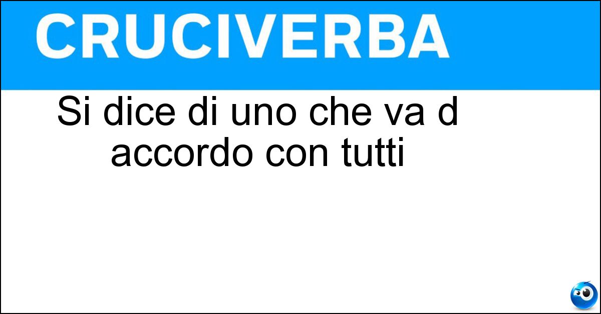 Per risolvere la definizione "Si dice di uno che va d accordo con tutti", in questa pagina trovi la soluzione pronta per l’inserimento nello schema. In alcuni casi, il significato della definizione può variare leggermente in base al contesto del cruciverba e alle lettere fornite dagli incroci. Nonostante queste possibili differenze, l’analisi effettuata su "Si dice di uno che va d accordo con tutti" conferma che la soluzione indicata è quella più coerente e compatibile con la maggior parte degli schemi italiani.