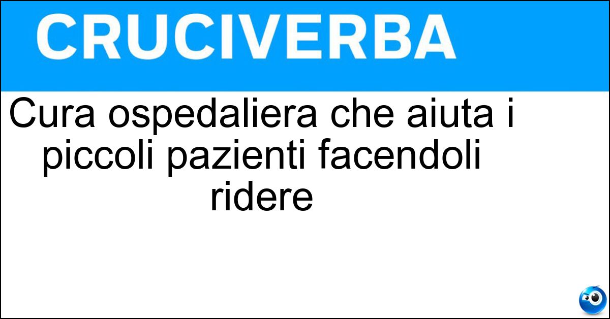 Nei cruciverba e nelle parole crociate, la definizione "Cura ospedaliera che aiuta i piccoli pazienti facendoli ridere" corrisponde a una soluzione formata da 12 lettere. È un quesito ricorrente nel mondo dell’enigmistica, presente con frequenza sia nelle griglie stampate sia nei giochi digitali dedicati agli appassionati.