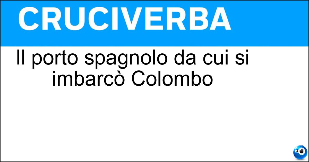 Adesso divertiti e prova a risolvere anche queste definizioni correlate: La località della Spagna da cui salpò ColomboIl porto da cui Colombo lasciò l EuropaIl porto da cui partì ColomboIl porto in cui si ammaraPorto del Messinese in cui ci si imbarca per le EolieIl porto da cui salpò Colombo nel 1492