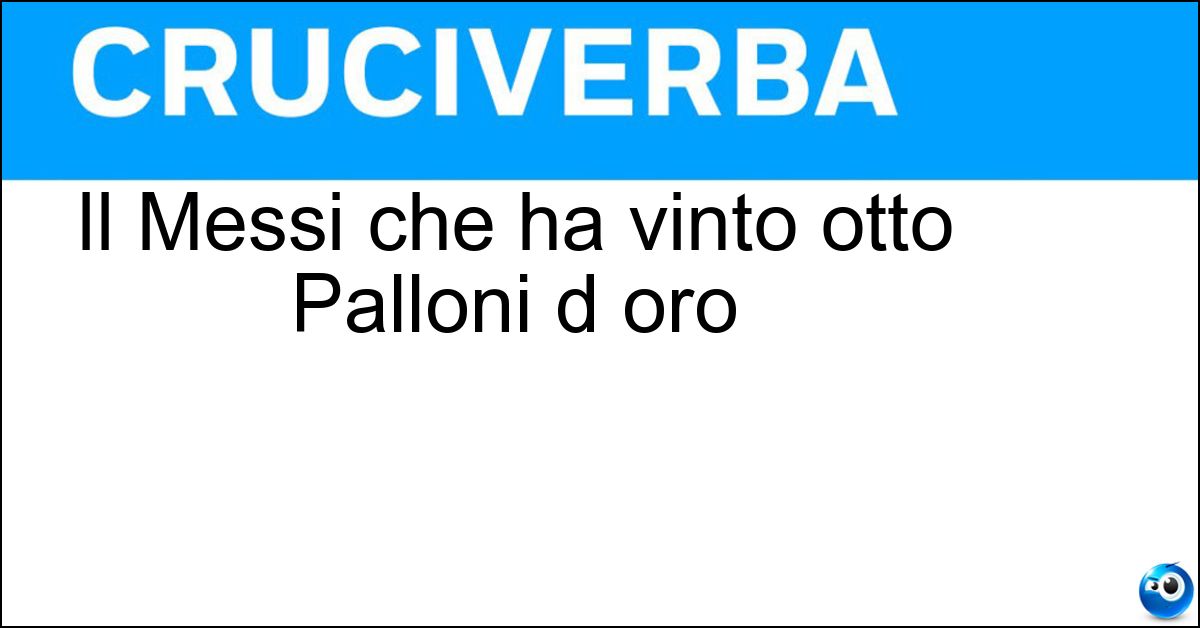 Adesso divertiti e prova a risolvere anche queste definizioni correlate: Richie famoso cantante USALo Stander del cinemaIl Messi pluripremiato calciatore argentinoMessi l ha vinto otto volteIl Messi che ha vinto ben sette Palloni d OroL unico tennista che ha vinto otto volte WimbledonIl Paolo che con Le otto montagne ha vinto il Premio Strega 2017Ha vinto svariate Champions League