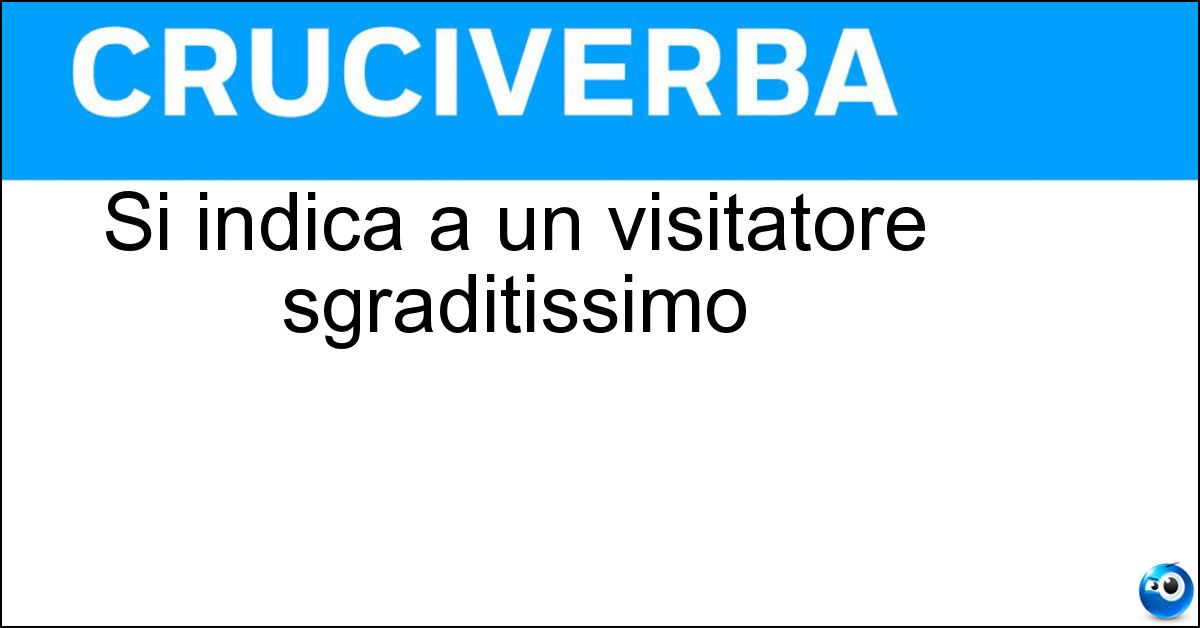 Nei cruciverba e nelle parole crociate, la definizione "Si indica a un visitatore sgraditissimo" corrisponde a una soluzione formata da 6 lettere. È un quesito ricorrente nel mondo dell’enigmistica, presente con frequenza sia nelle griglie stampate sia nei giochi digitali dedicati agli appassionati.