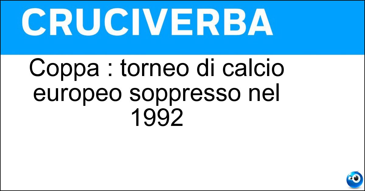 Nei cruciverba e nelle parole crociate, la definizione "Coppa : torneo di calcio europeo soppresso nel 1992" corrisponde a una soluzione formata da 7 lettere. È un quesito ricorrente nel mondo dell’enigmistica, presente con frequenza sia nelle griglie stampate sia nei giochi digitali dedicati agli appassionati.