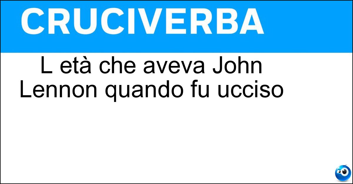 Nei cruciverba e nelle parole crociate, la definizione "L età che aveva John Lennon quando fu ucciso" corrisponde a una soluzione formata da 11 lettere. È un quesito ricorrente nel mondo dell’enigmistica, presente con frequenza sia nelle griglie stampate sia nei giochi digitali dedicati agli appassionati.
