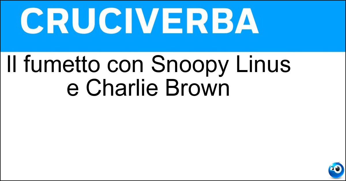 Adesso divertiti e prova a risolvere anche queste definizioni correlate: La striscia a fumetti con Snoopy e LinusI fumetti con LinusI personaggi dei fumetti di SchulzIl fumetto con Charlie Brown e LinusNon la lascia mai Linus l amico di Charlie BrownLo sport di Charlie BrownL amico di Charlie BrownUn amica di Charlie Brown